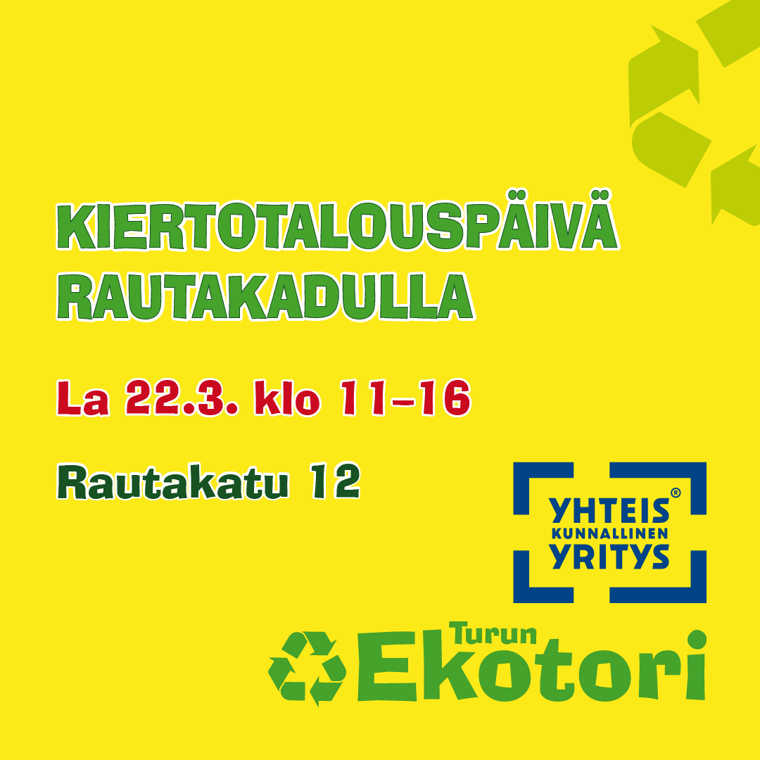 Kierrätyspäivän kunniaksi Turun Ekotorilla järjestetään kiertotalouspäivä lauantaina 22.3.2025 klo 11–16 Rautakadun myymälässä, osoitteessa Rautakatu 12.