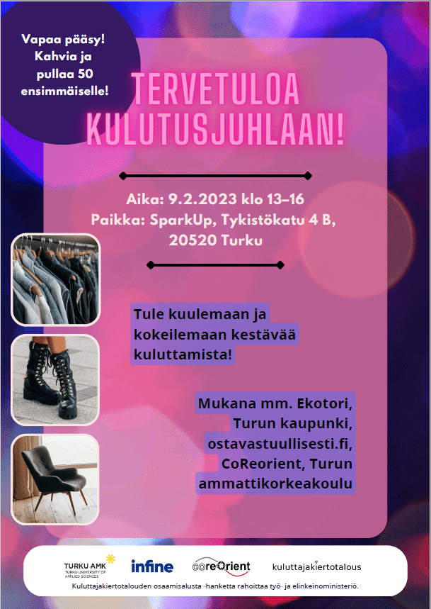 Tilaisuutta vetää Turun ammattikorkeakoulu. Mukana ovat myös mm. Turun kaupunki, ostavastuullisesti.fi, CoReorient ja Turun Ekotori.