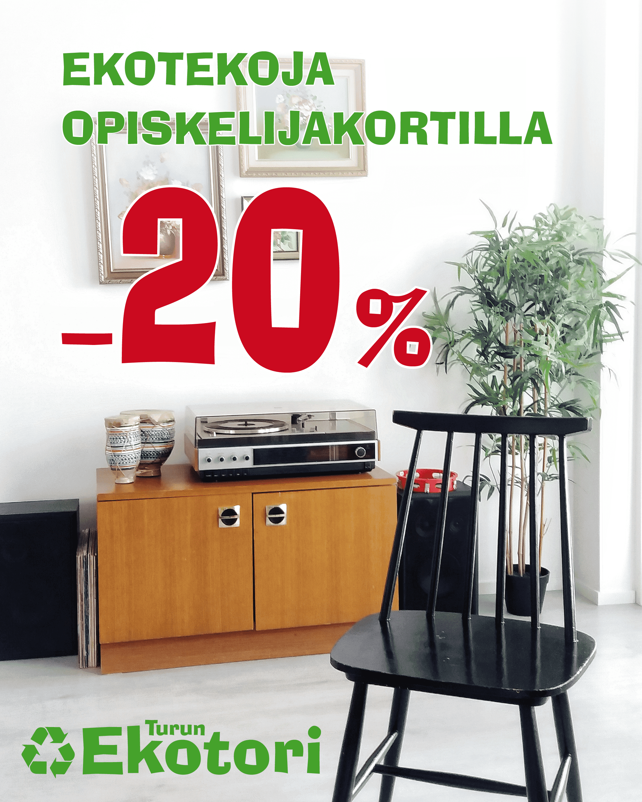 Saat 20 %:n opiskelija-alennuksen opiskelijakorttia vastaan vähintään 5 €:n ostoksesta myymälöissämme. Opiskelija-alennusta ei toistaiseksi saa verkkokauppaostoksista.