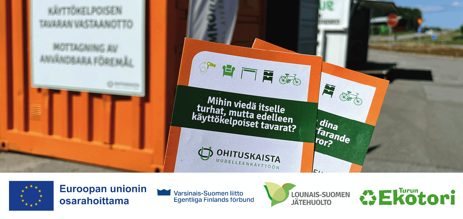 Ohituskaista uudelleenkäyttöön -hankkeella Lounais-Suomen Jätehuollon kanssa pyrimme madaltamaan tavaroiden uudelleenkäytön kynnystä ja vähentämään käyttökelpoisen tavaran päätymistä jätteeksi