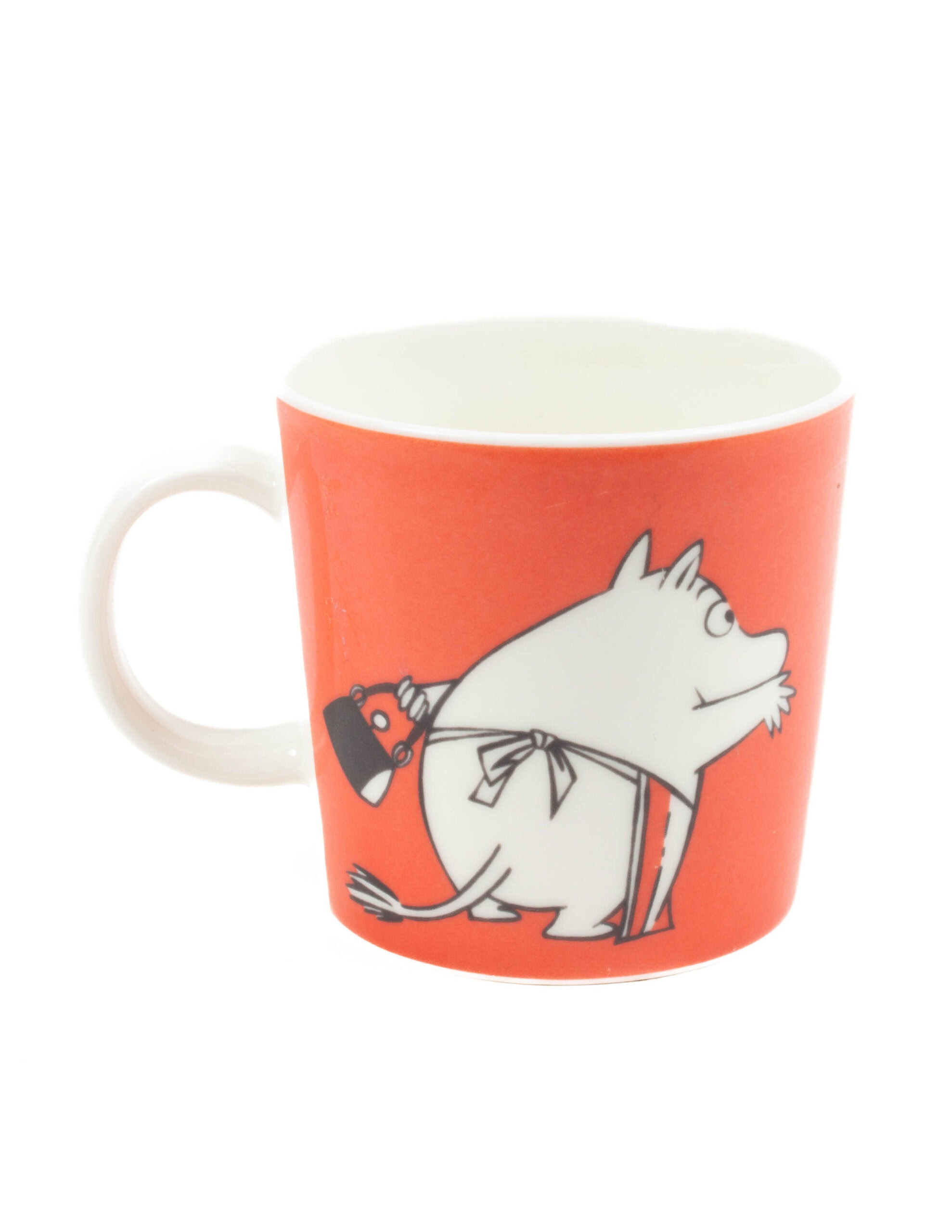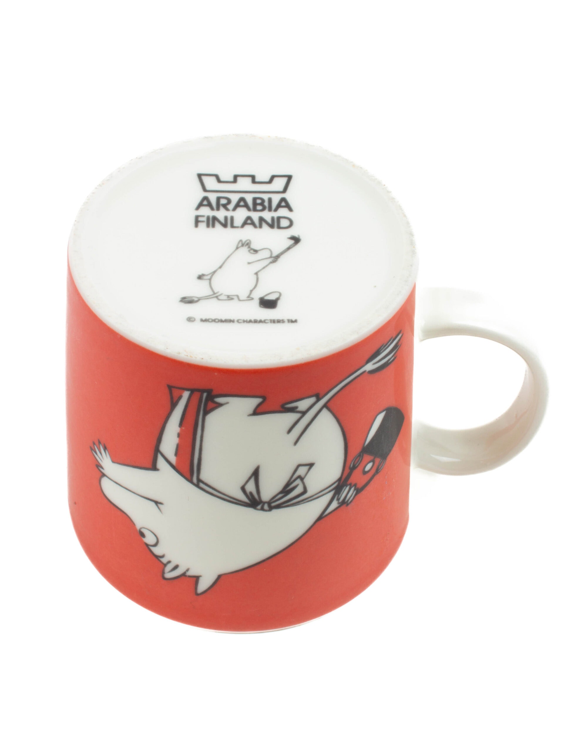 Tuotannosta poistunut punainen muumimuki. Tuotantovuodet 1999-2013.