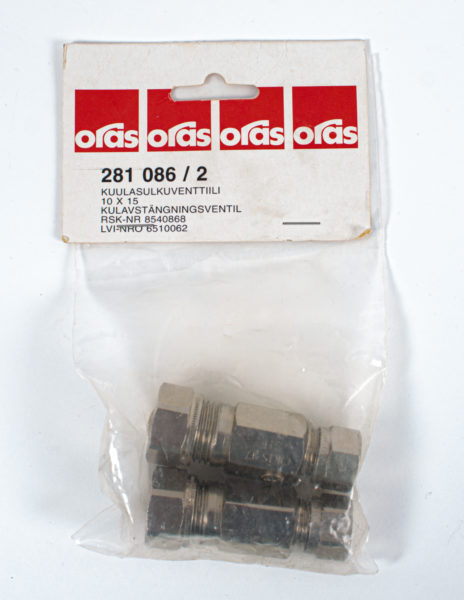 ORAS kuulasulkuventtiili 10 x 15 2 kpl.