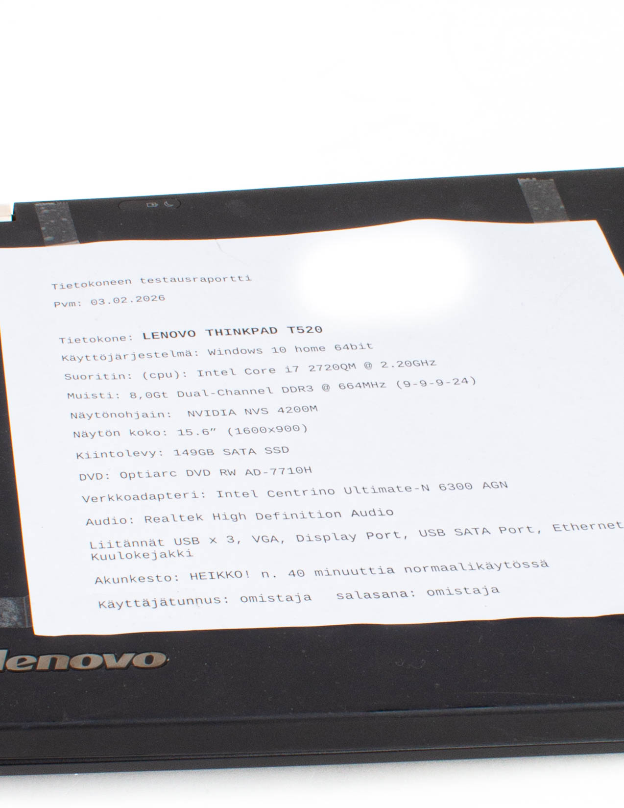 Tarkistettu Lenovon T520 läppäri.